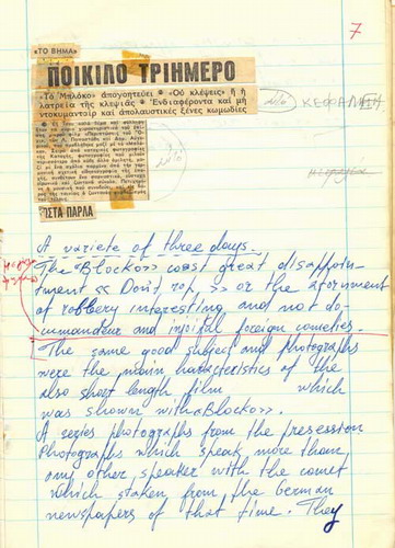 Εξ ίσου καλό θέμα και σύλληψη ήταν τα κύρια χαρακτηριστικά του επίσης μικρού φιλμ «Περιπτώσεις του όχι», των Λ. Παπαστάθη και Δημ. Αυγερινού, που προβλήθηκε μαζί με το «Μπλόκο». Σειρά από κατοχικές φωτογραφίες της Κατοχής, φωτογραφίες που μιλούν περισσότερο από κάθε άλλο ομιλητή, μαζί, με ένα σχόλιο παρμένο από την γερμανική σχετική ειδησεογραφία της εποχής, συνθέτουν ένα σαρκαστικό, εύστοχα ειρωνικό και ζωντανό σύνολο. Πετυχημένη η μουσική που συνδέει, και εις βάρος της ταινίας ο ζωντανός συμβολισμός του τέλους.